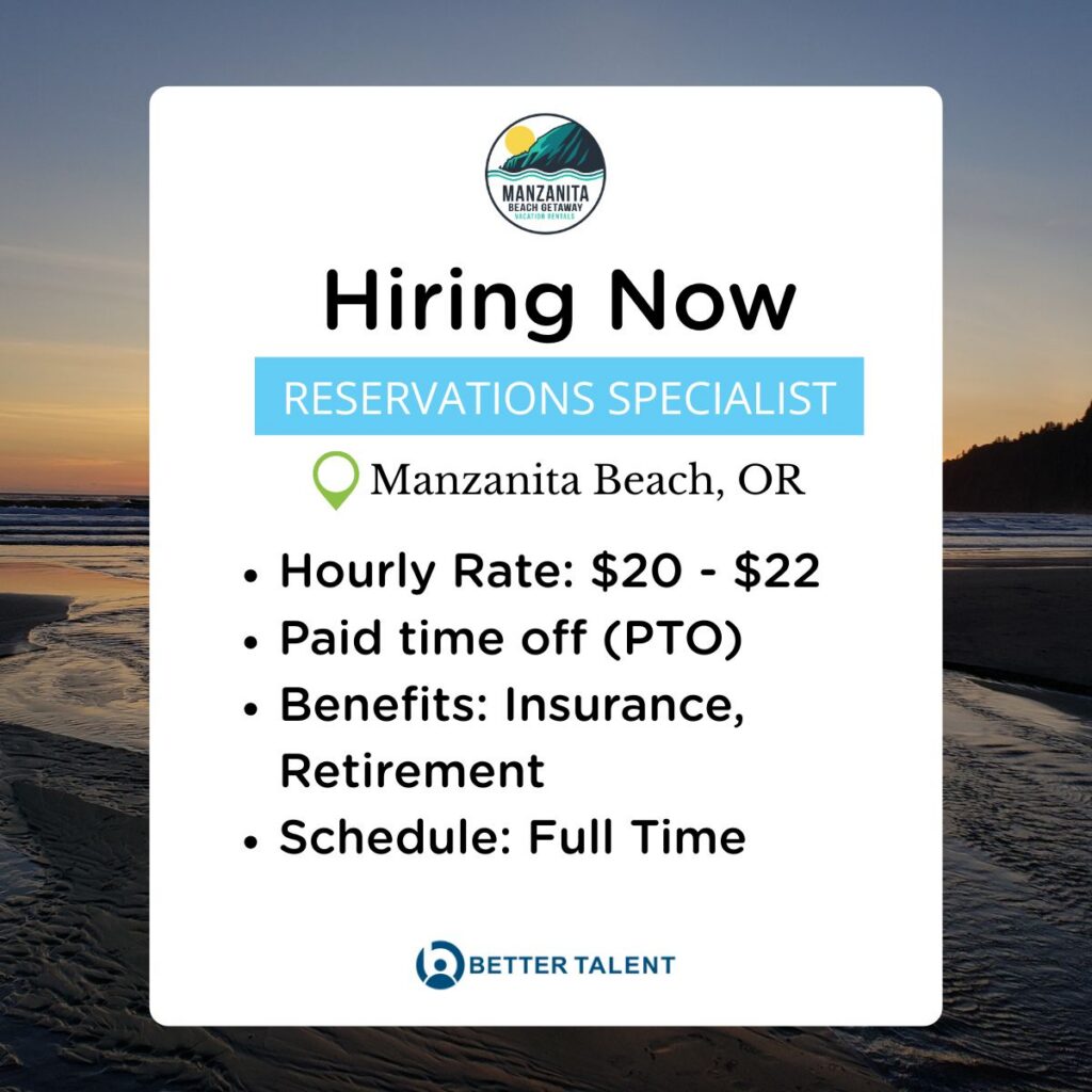 Manzanita Beach Getaway Rentals is seeking a dedicated Reservations Specialist to be a key point of connection between our guests and our team. In this role, you’ll be the friendly, knowledgeable voice guiding guests through their coastal getaway—from first inquiry to check-out—ensuring they feel welcomed, supported, and well cared for at every step.